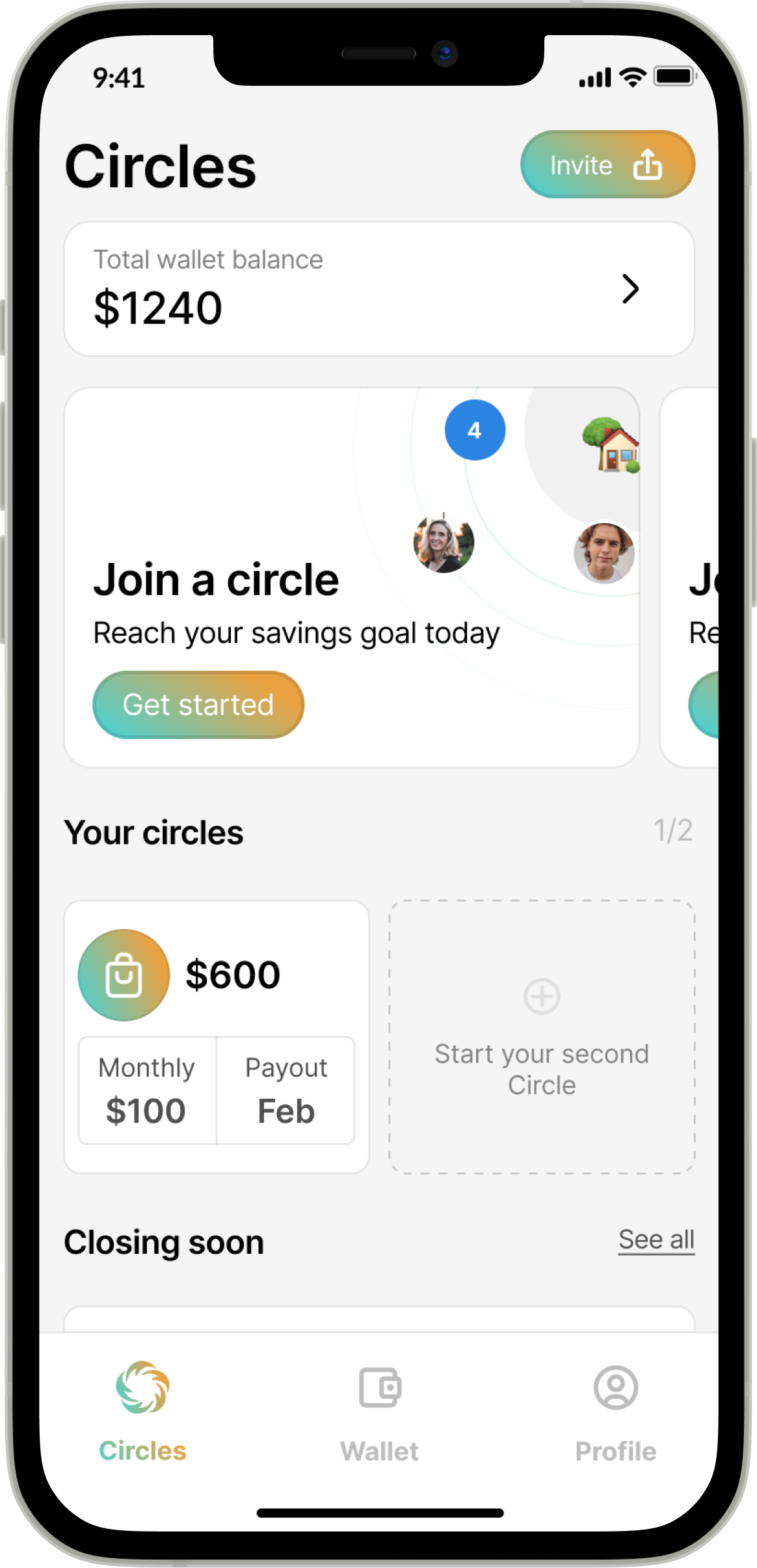 Become a part of a group with the same savings goals as you – your micro, classic, or solo circle.